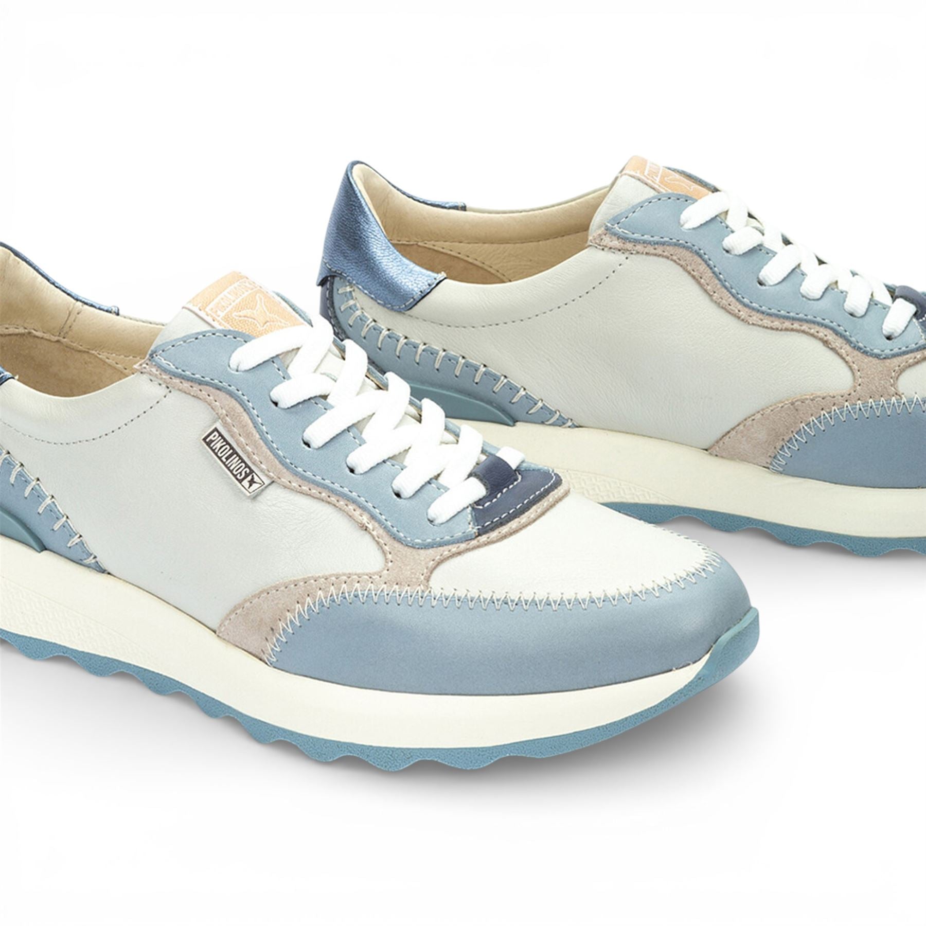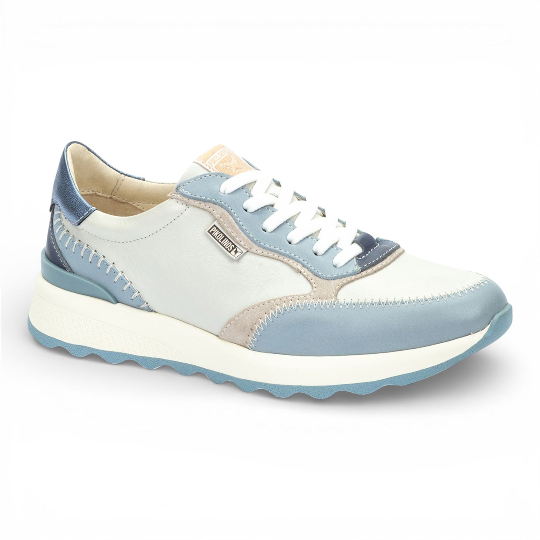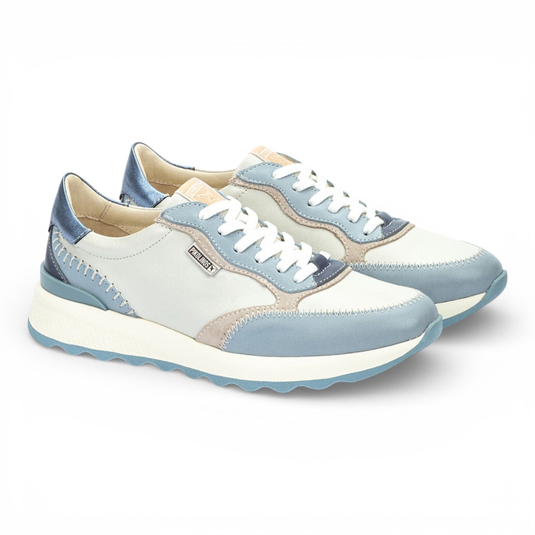 Pikolinos Women's Denim Blue Leather Lace Up Sneaker Trainers Shoes - Arrecife