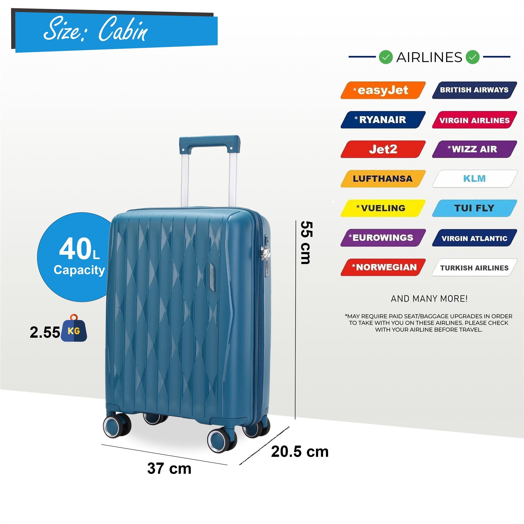Robust Hard Shell Cabin Suitcase 37.5 x 20.5 x 55 cm TSA Luggage Suitable for Easyjet, Ryanair, Wizzair