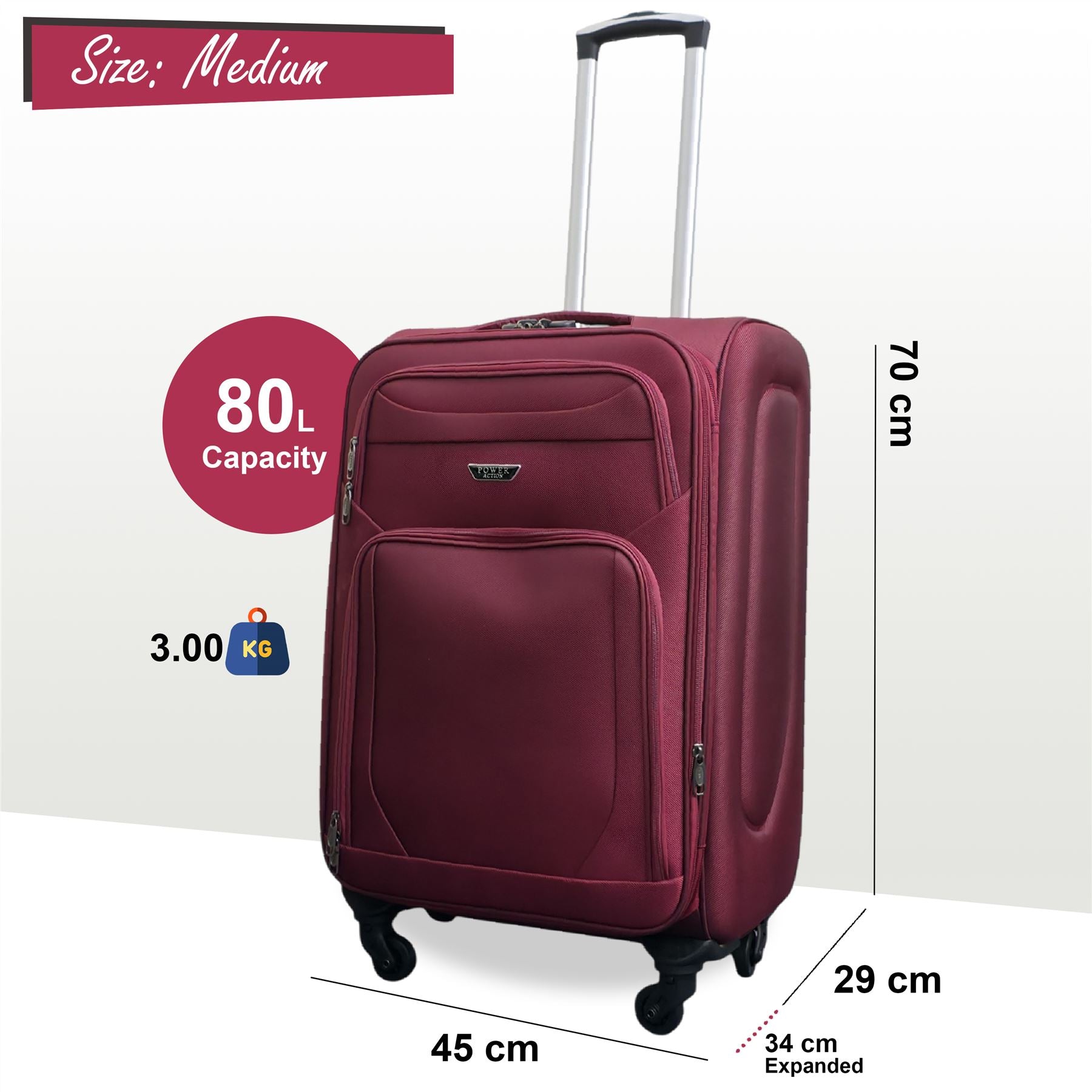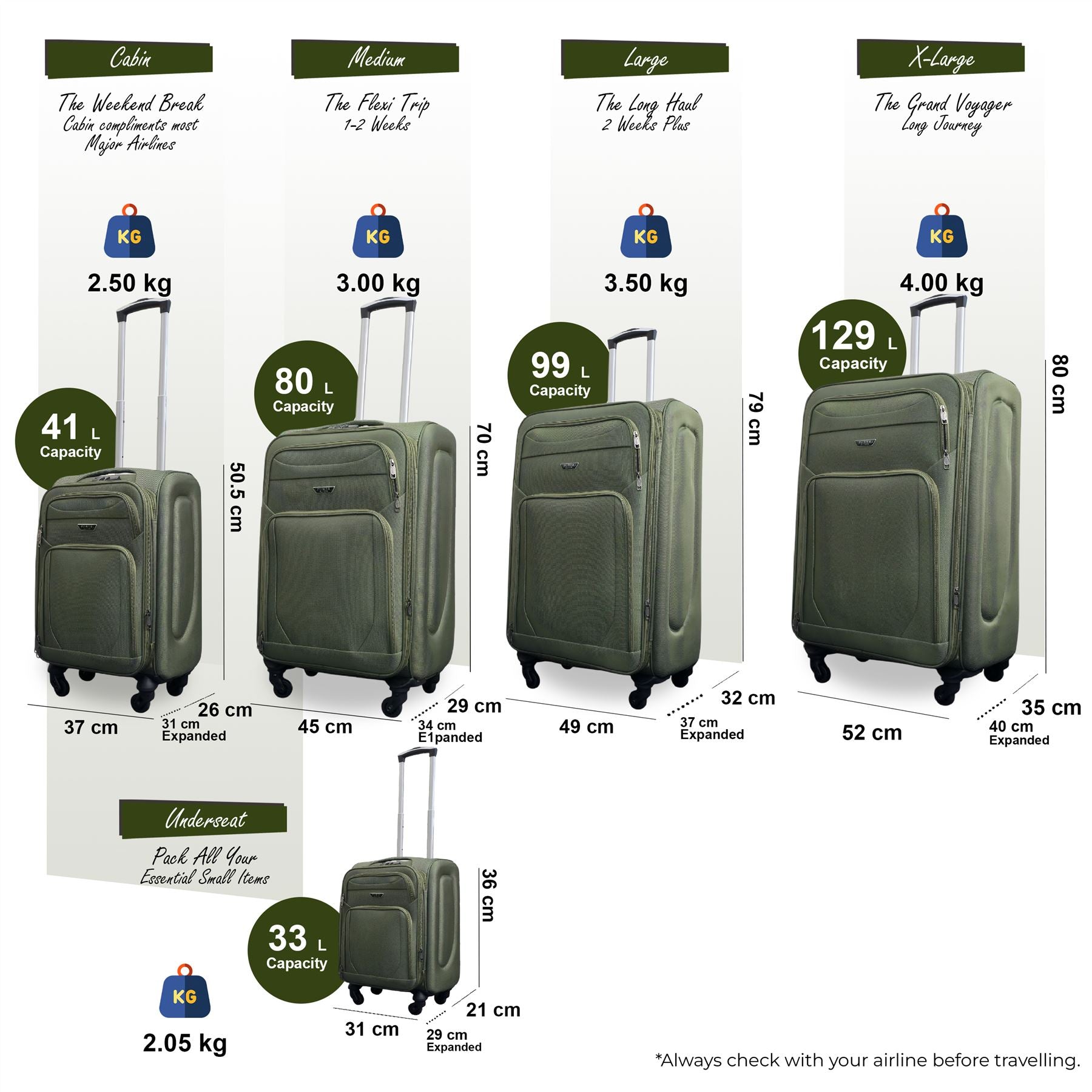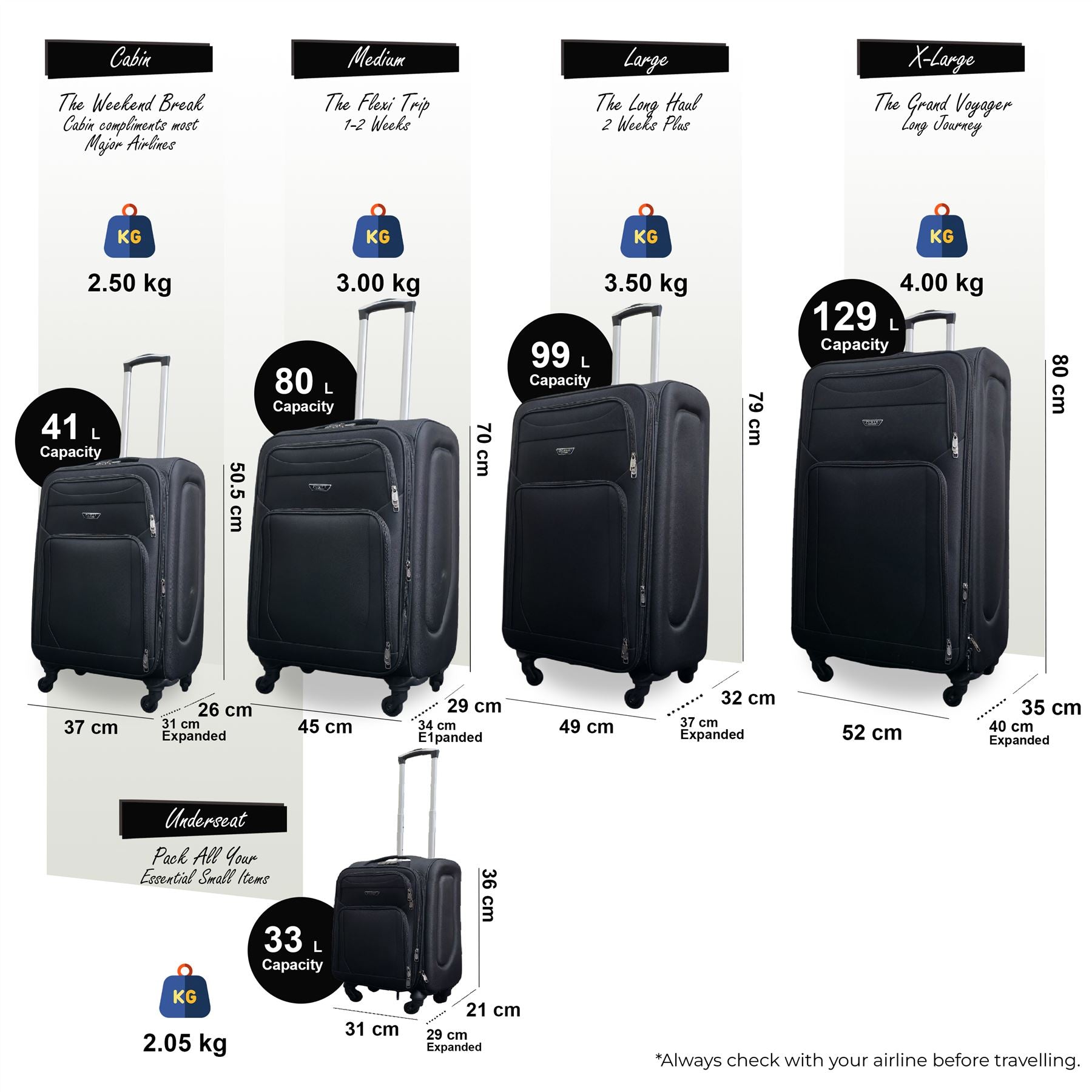 Soft Shell Lightweight Nylon Suitcase Set 4 Wheel Travel Case Holiday Bags