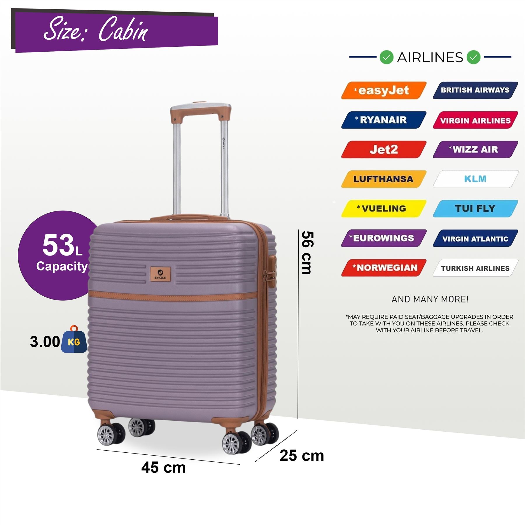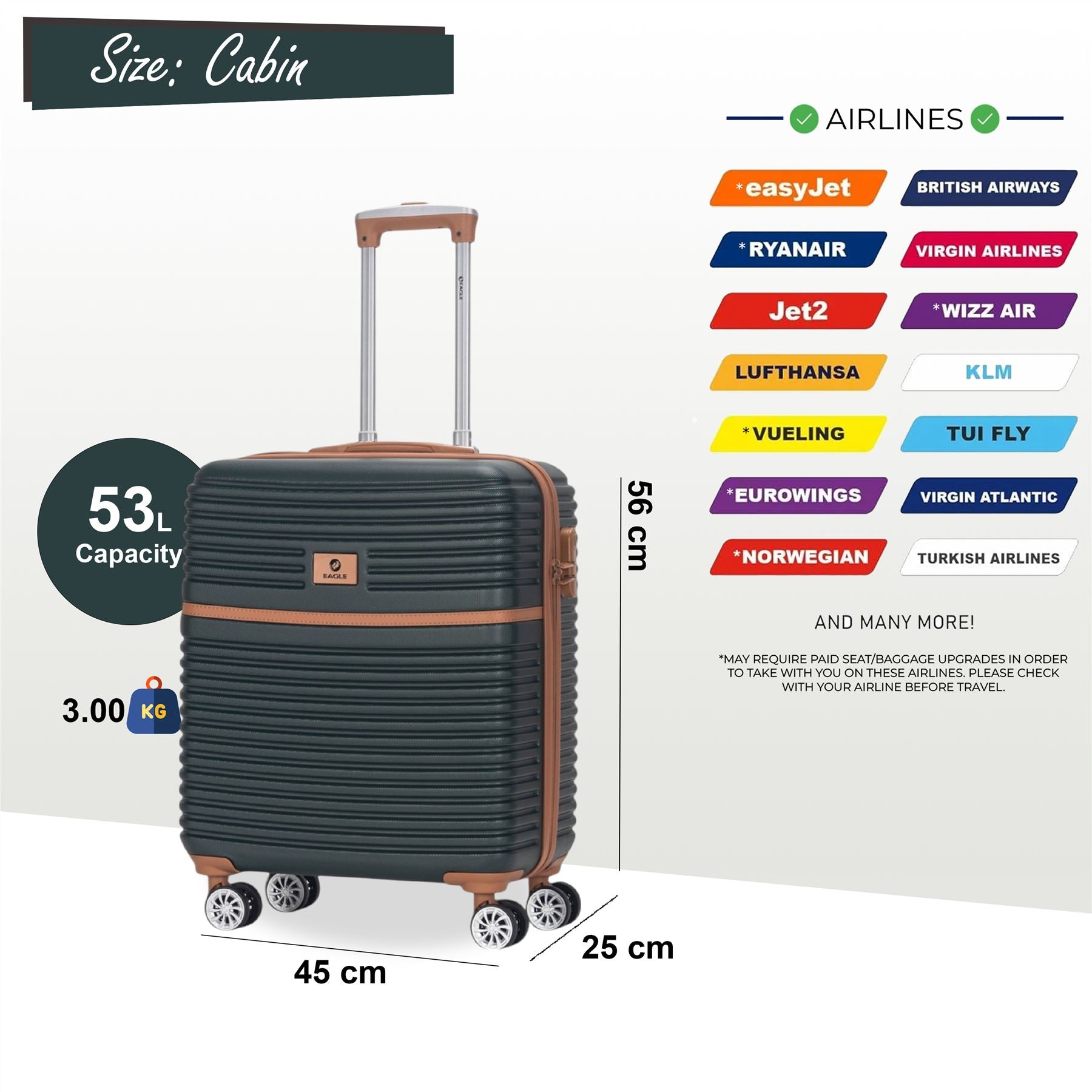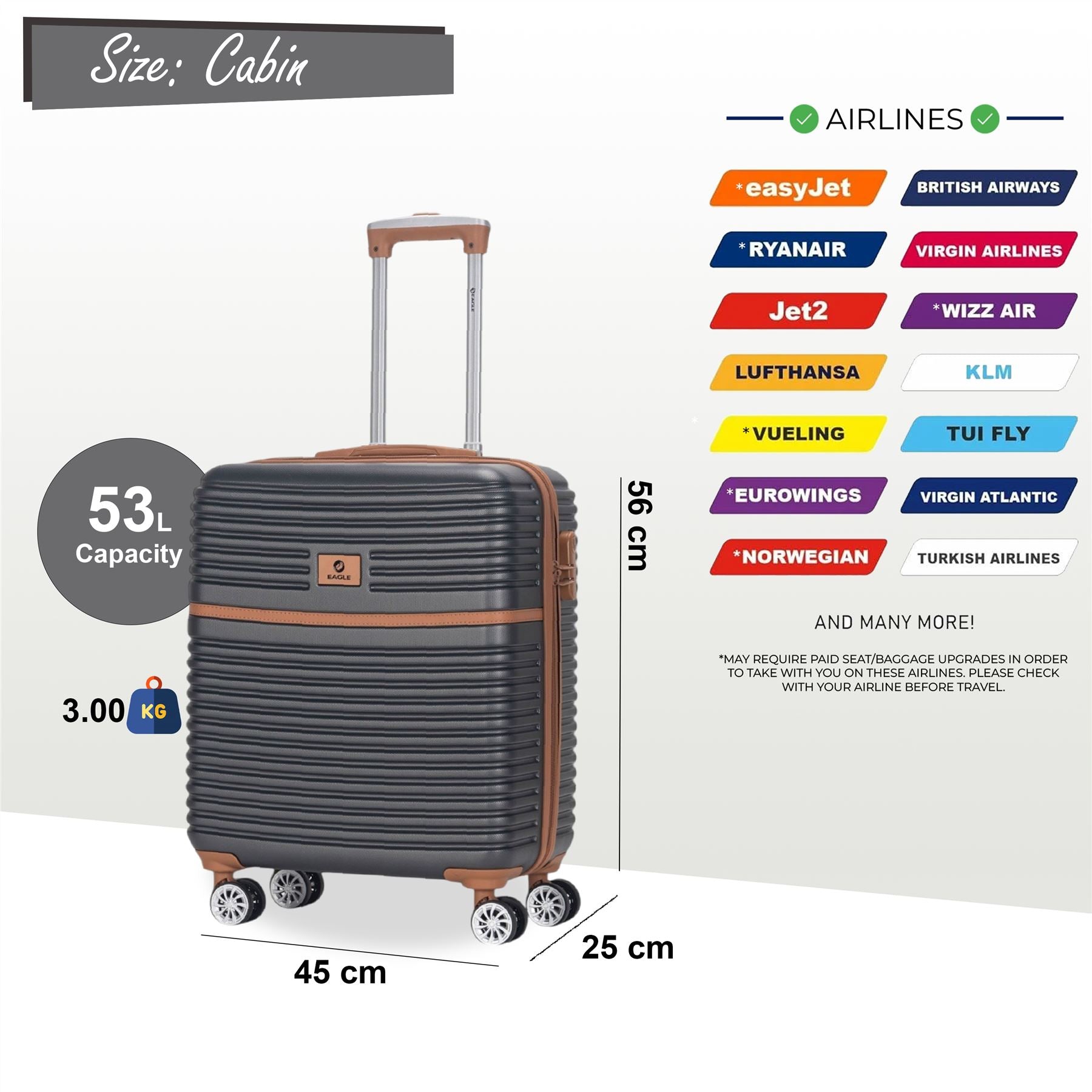 Strong ABS Hardshell Cabin Suitcase 56 x 45 x 25 cm Luggage Suitable for British Airways