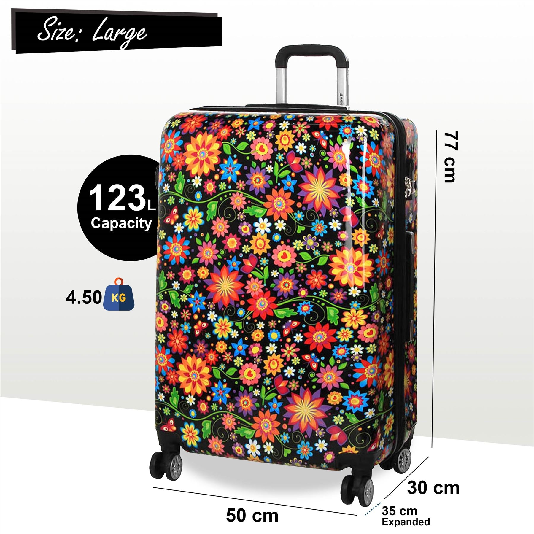 Strong Expandable Hard Shell Dual 4 Wheel Suitcase Set Print Luggage Cabin Travel Bag
