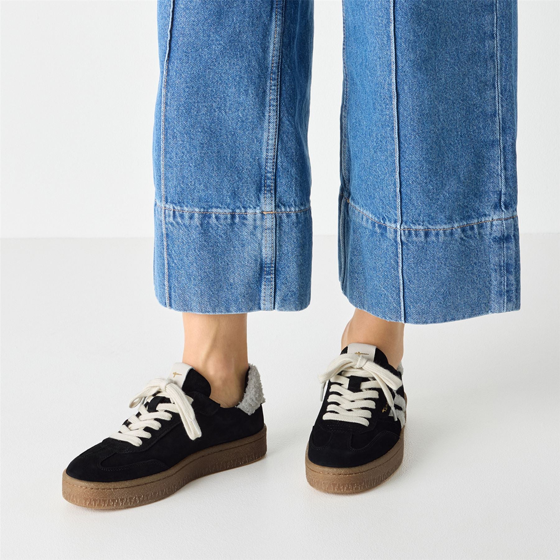 Tamaris Womens Black White Fur Suede Leather Fashion Lace Up Sneakers