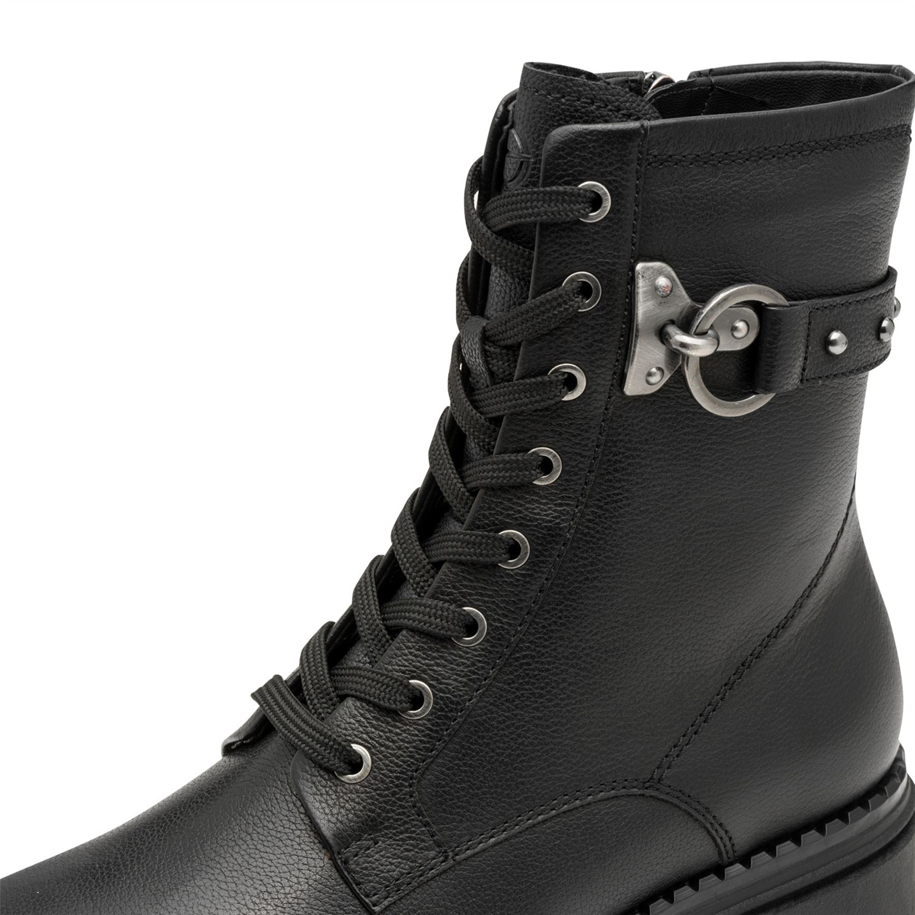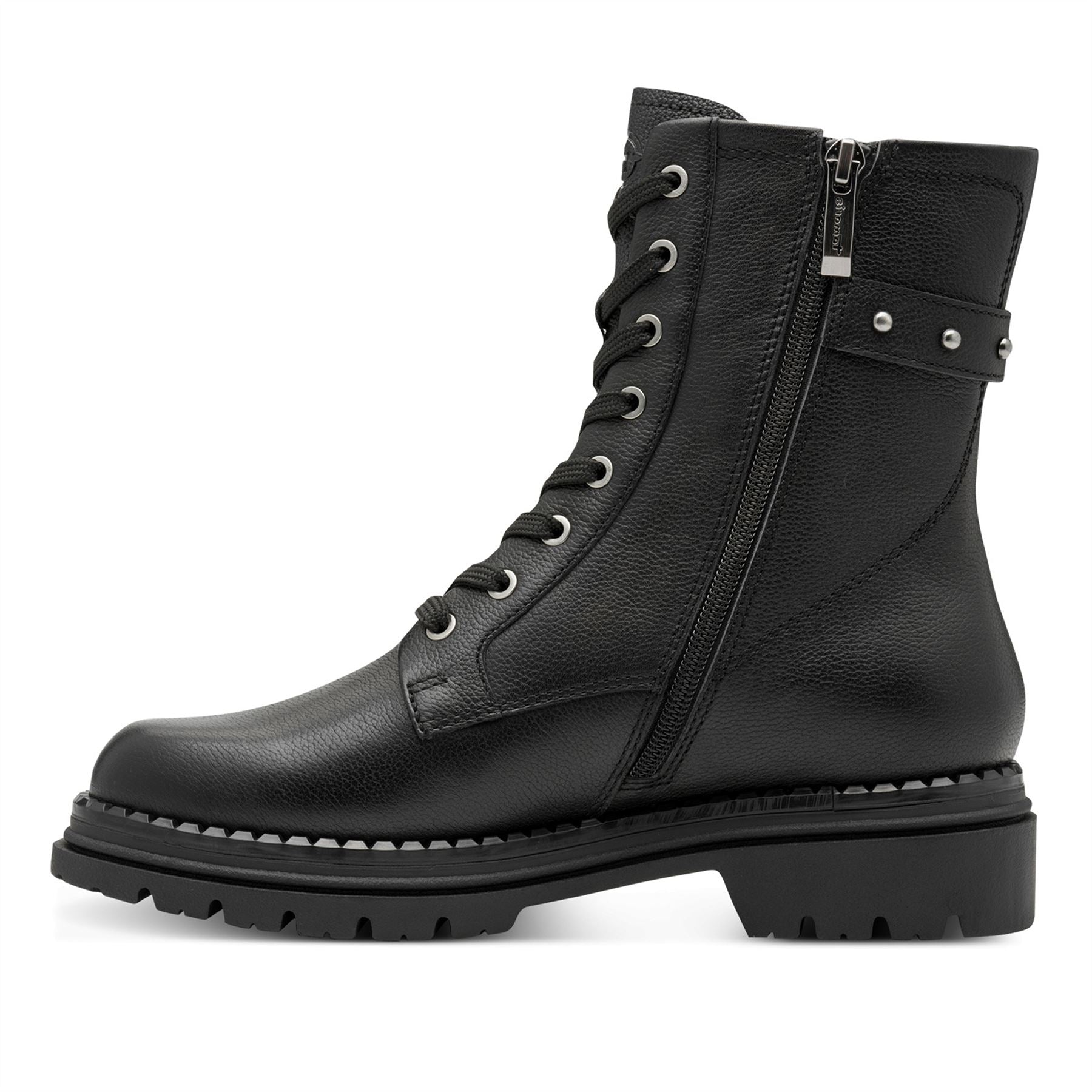 Tamaris Womens Fashion Black Leather Lace-Up Zip Combat Ankle Boots