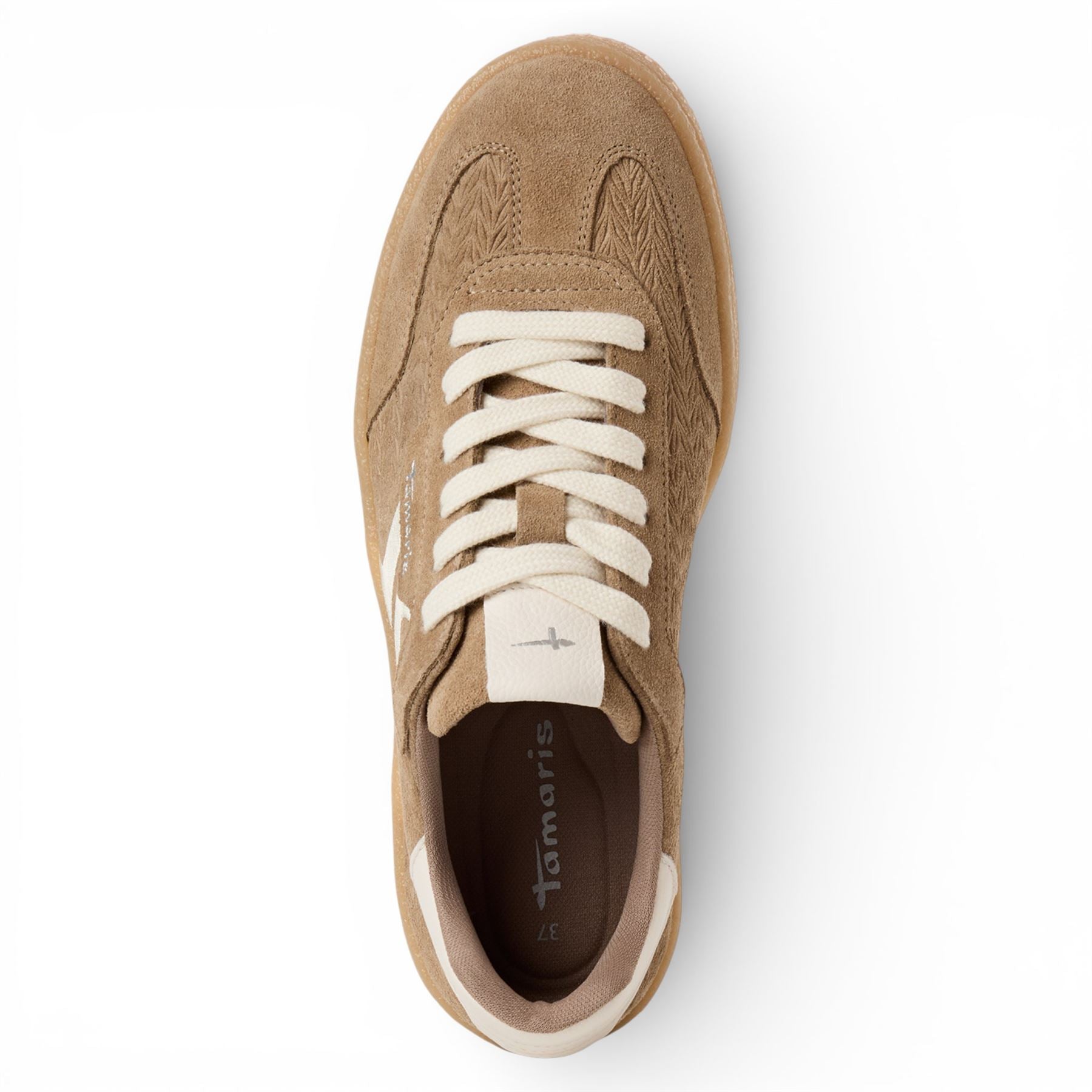 Tamaris Women's Taupe Leather White Stripes Trainers Sneaker Shoes