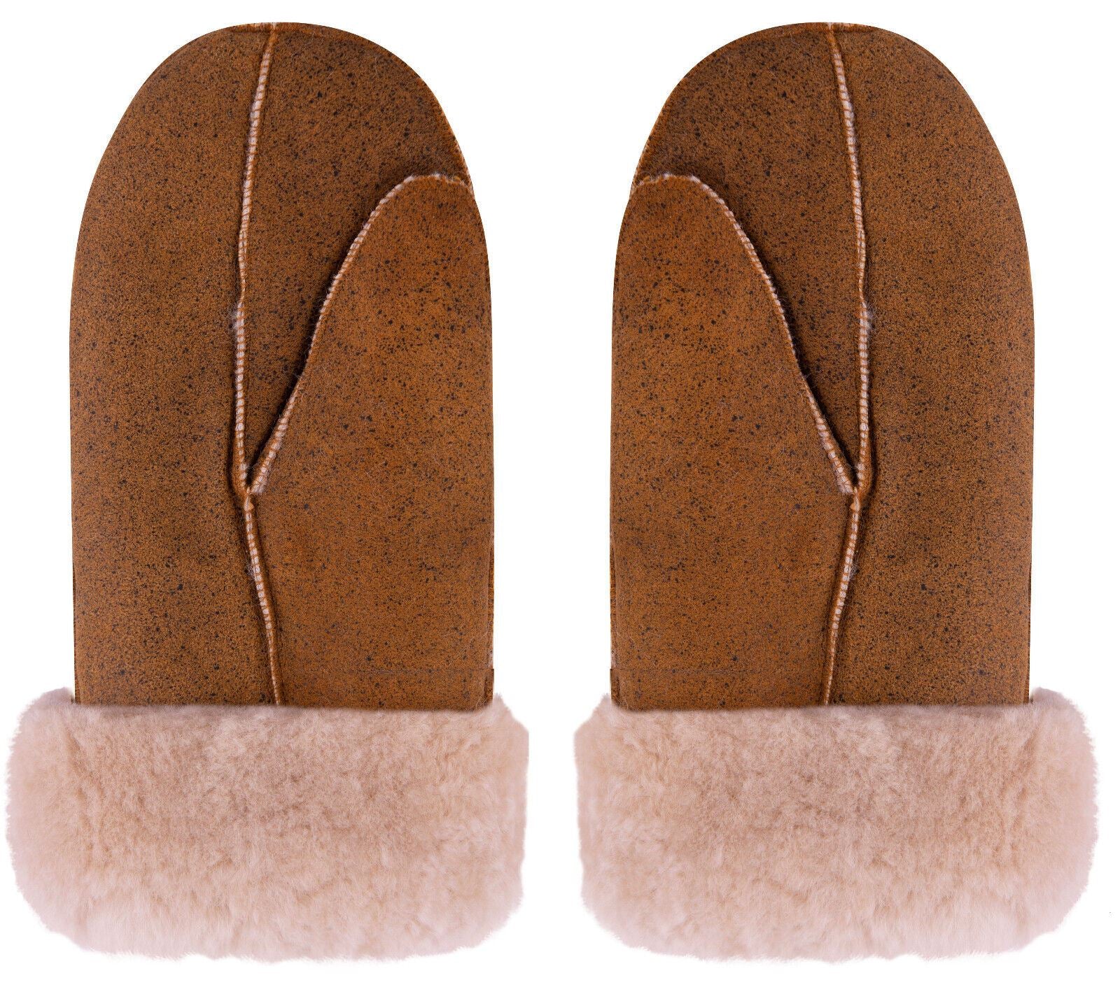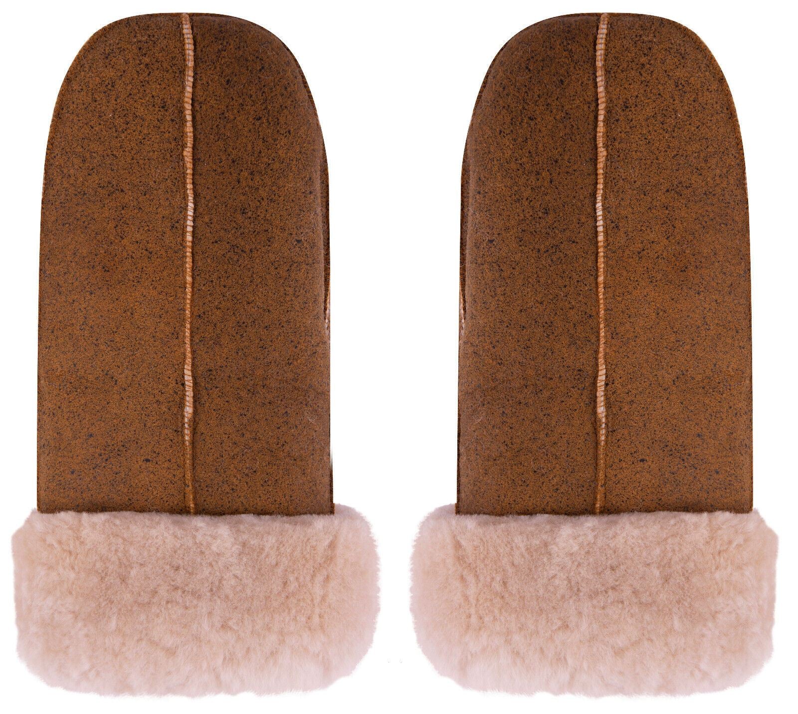 Unisex Rustic Brown Real Sheepskin Leather Shearling Gloves Warm Mittens
