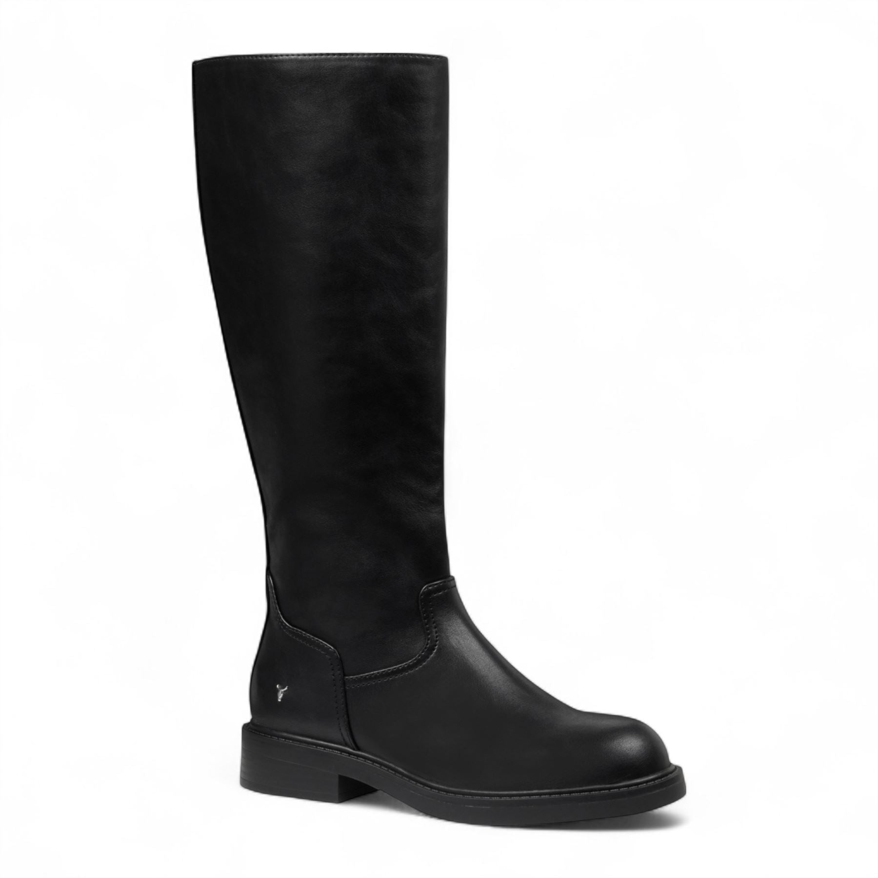 Windsorsmith Womens Black Fuax Leather Knee High Tall Boots - Blessing