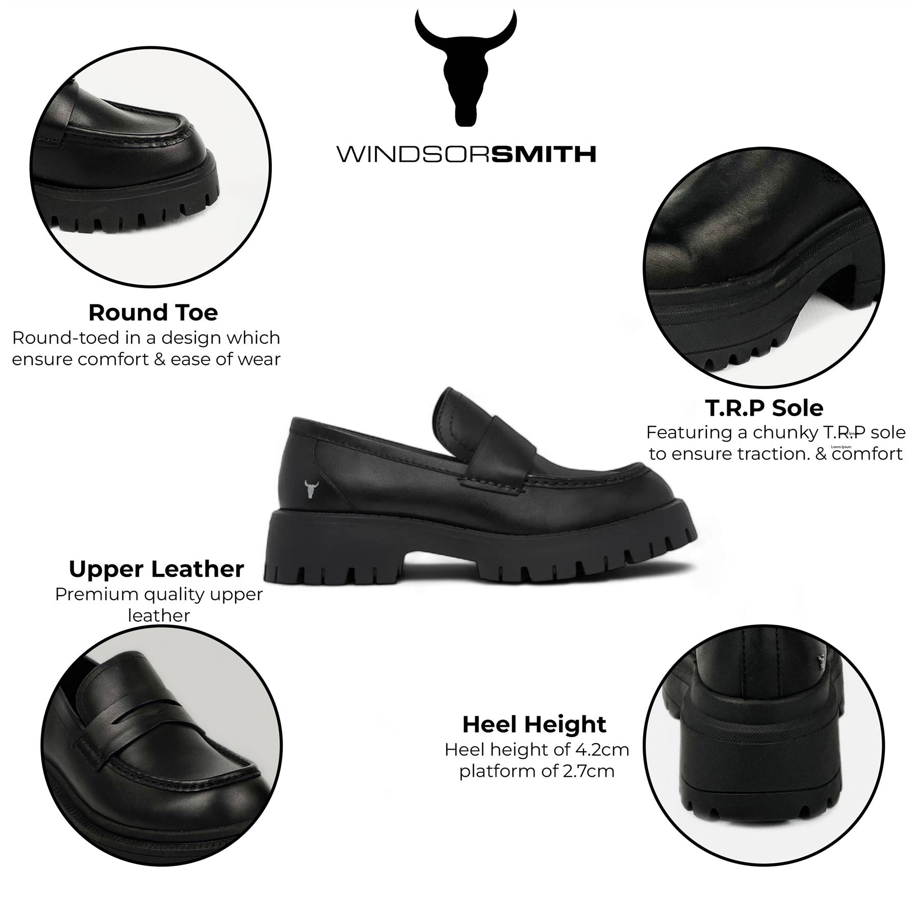 Windsorsmith Womens Black Leather Platform Chunky Loafers Shoes - True