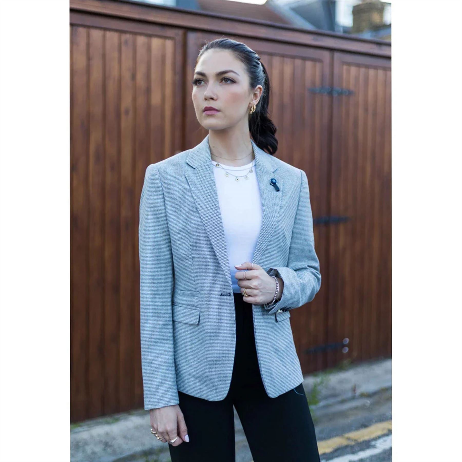 Women's Beige Tweed Tailored Fit Wool Blend Blazer