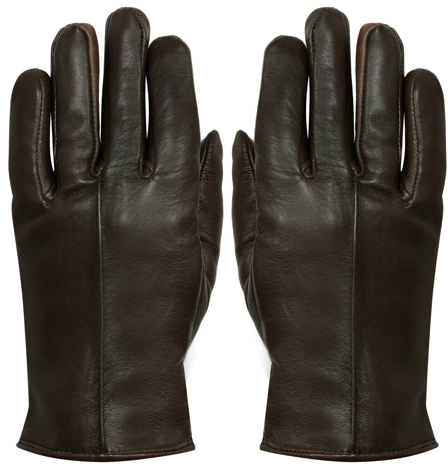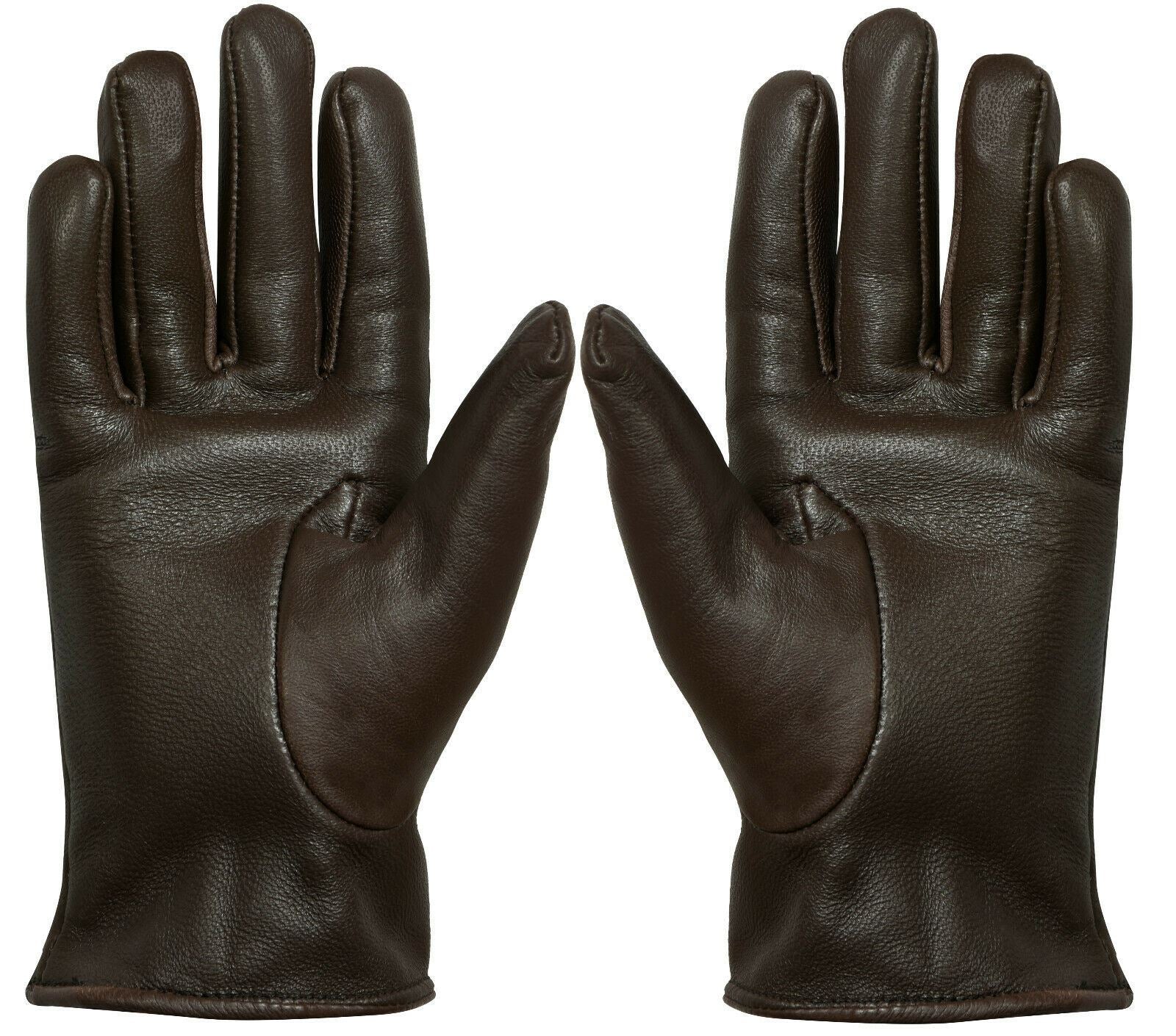 WOMENS BROWN CLASSIC SOFT REAL 100% LEATHER GLOVES THERMAL LINED DRIVING FITTED
