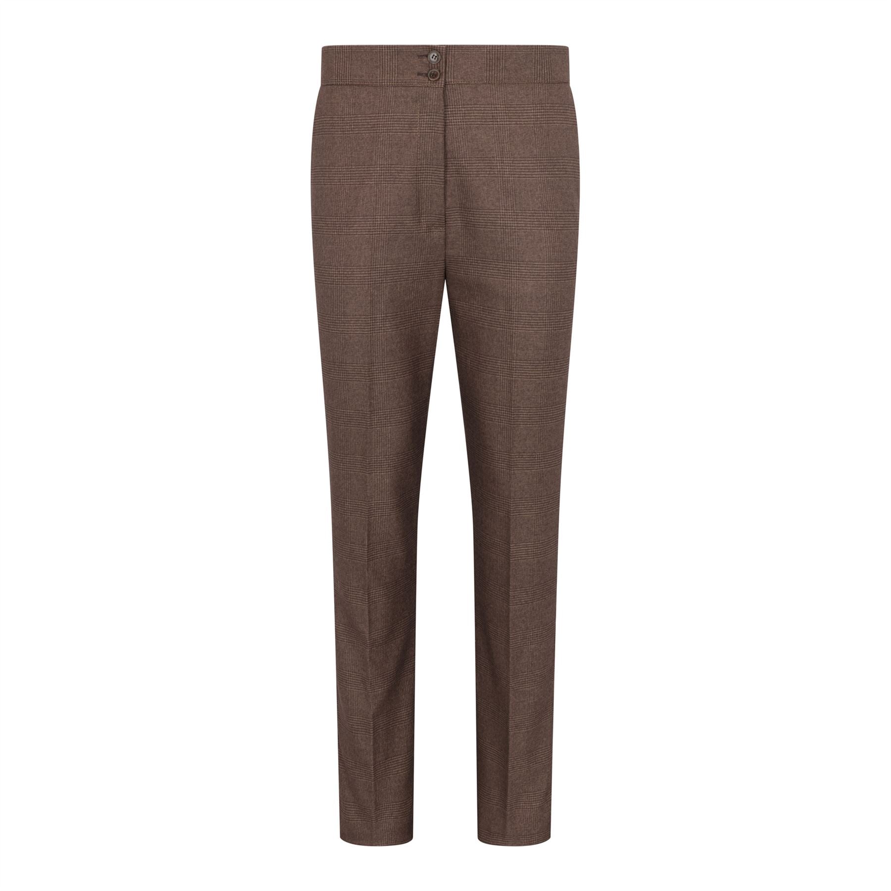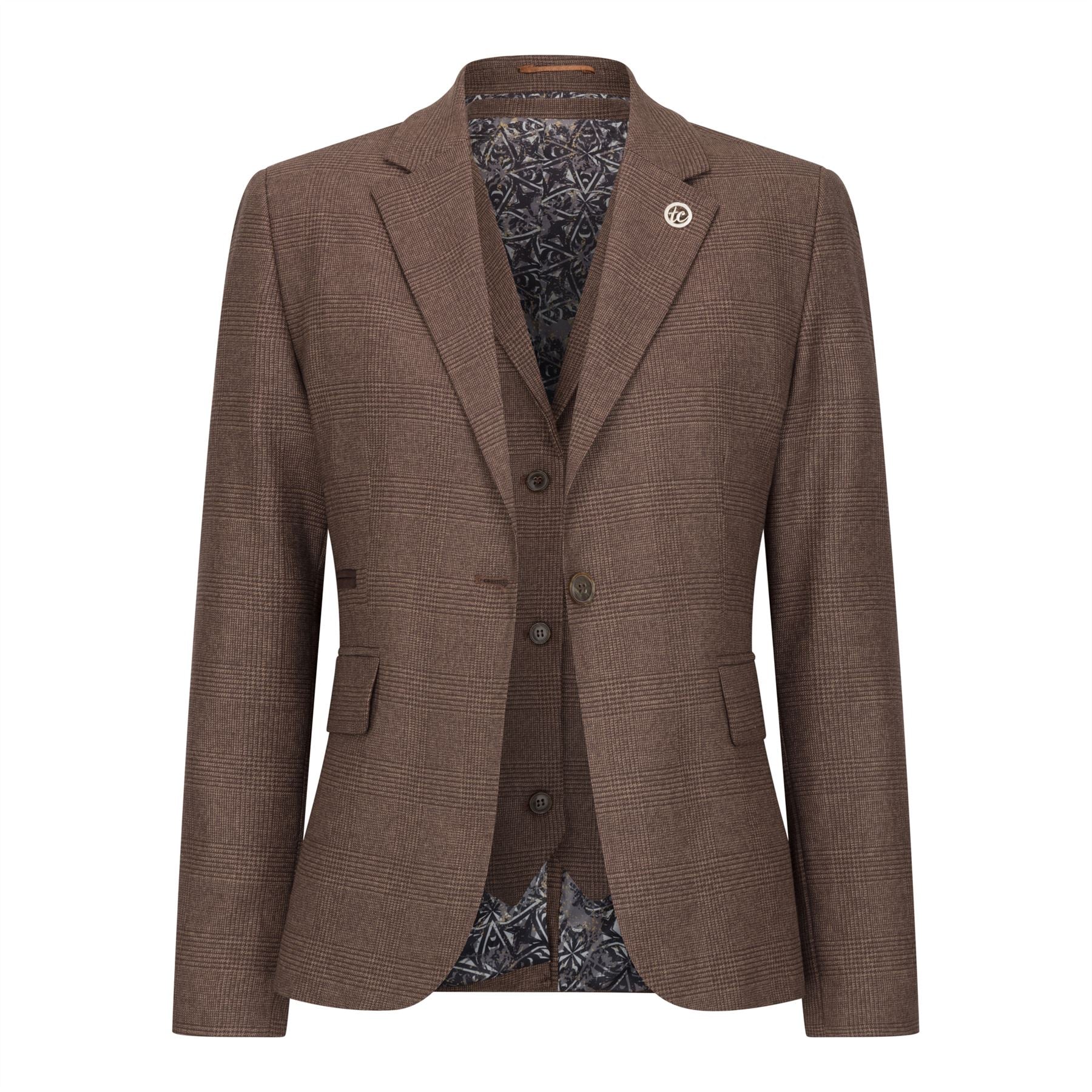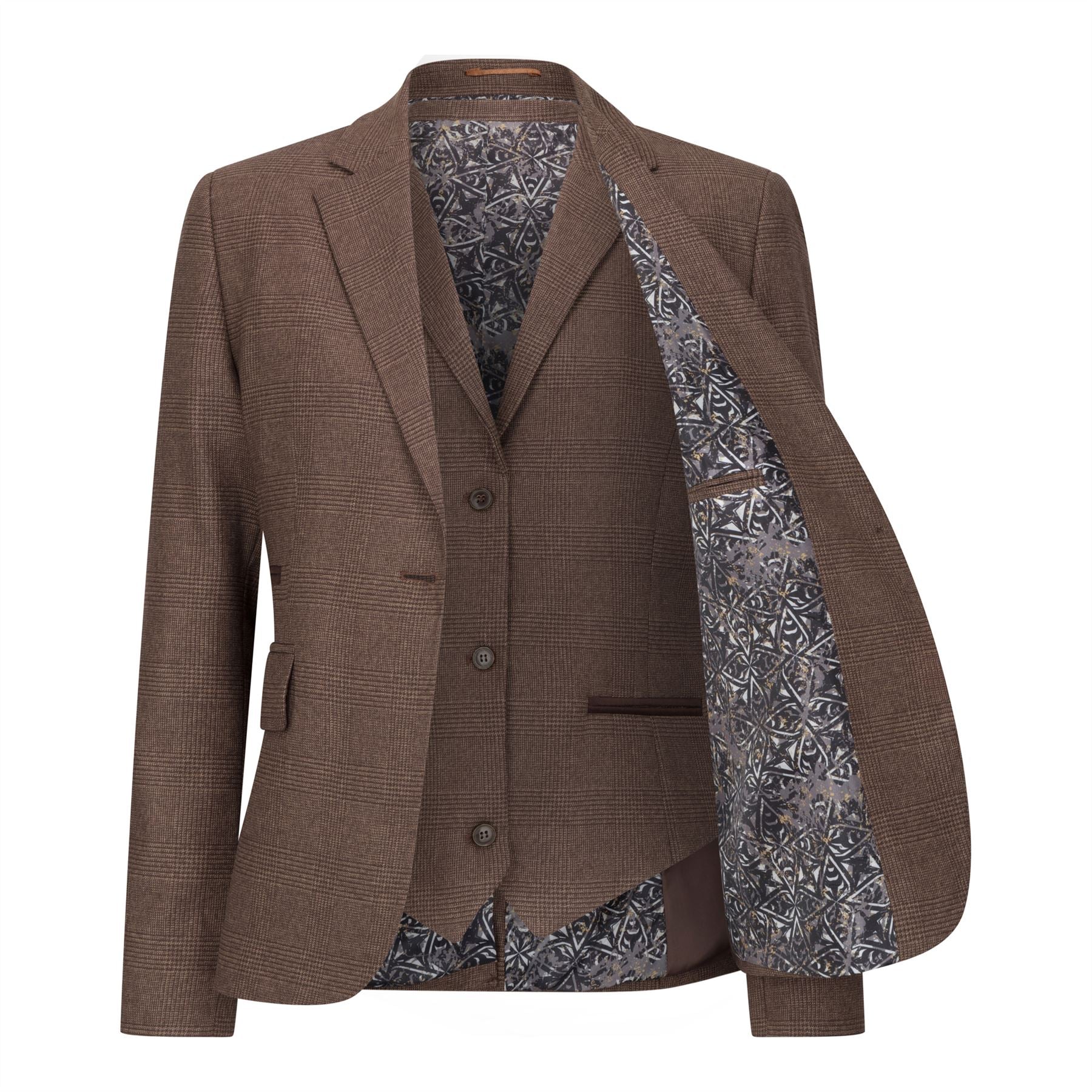 Women's Brown Three-Piece Tailored Fit Suit in Prince of Wales Check