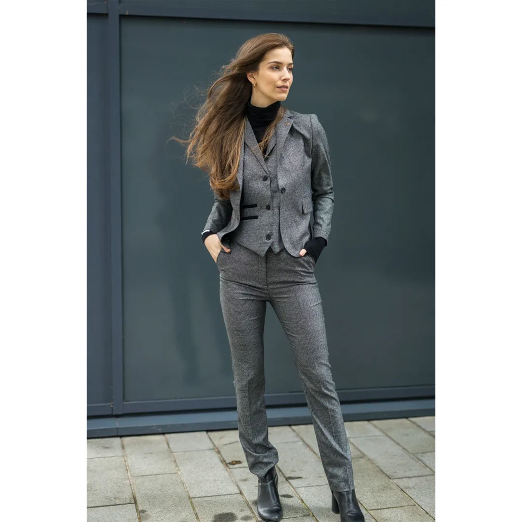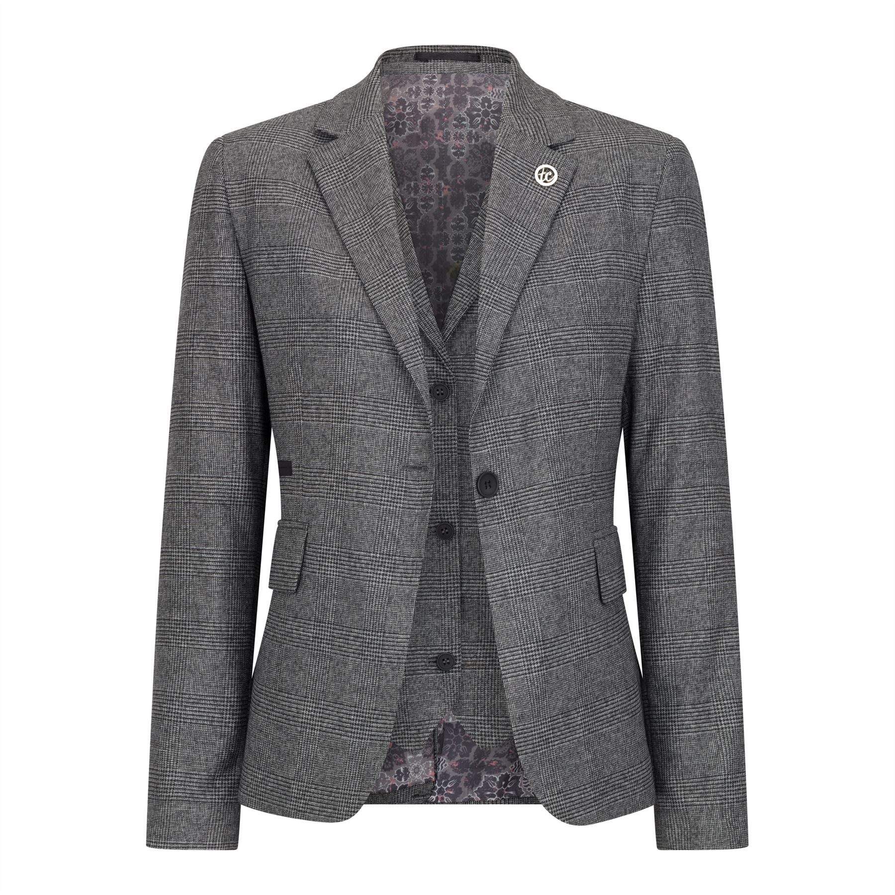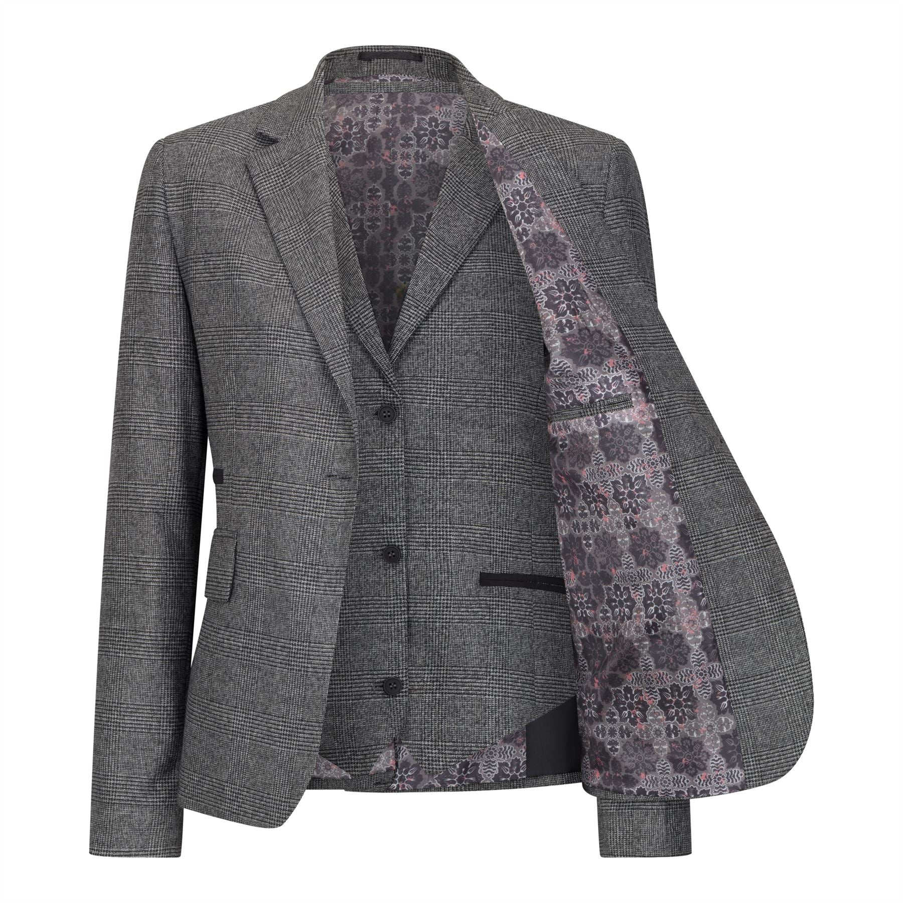 Women's Grey Three-Piece Tailored Fit Suit in Prince of Wales Check