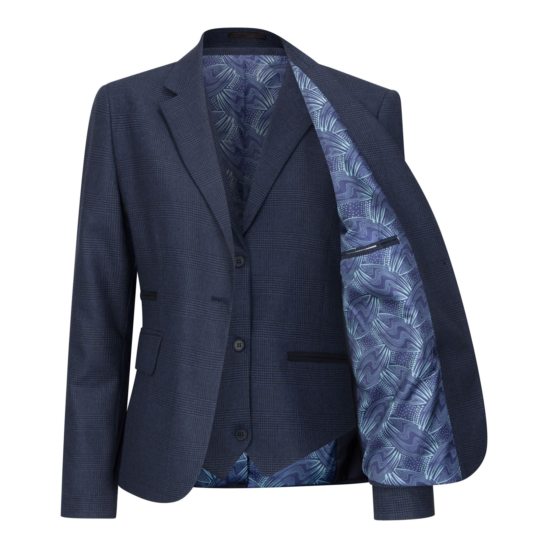 Women's Navy Three-Piece Tailored Fit Suit in Prince of Wales Check