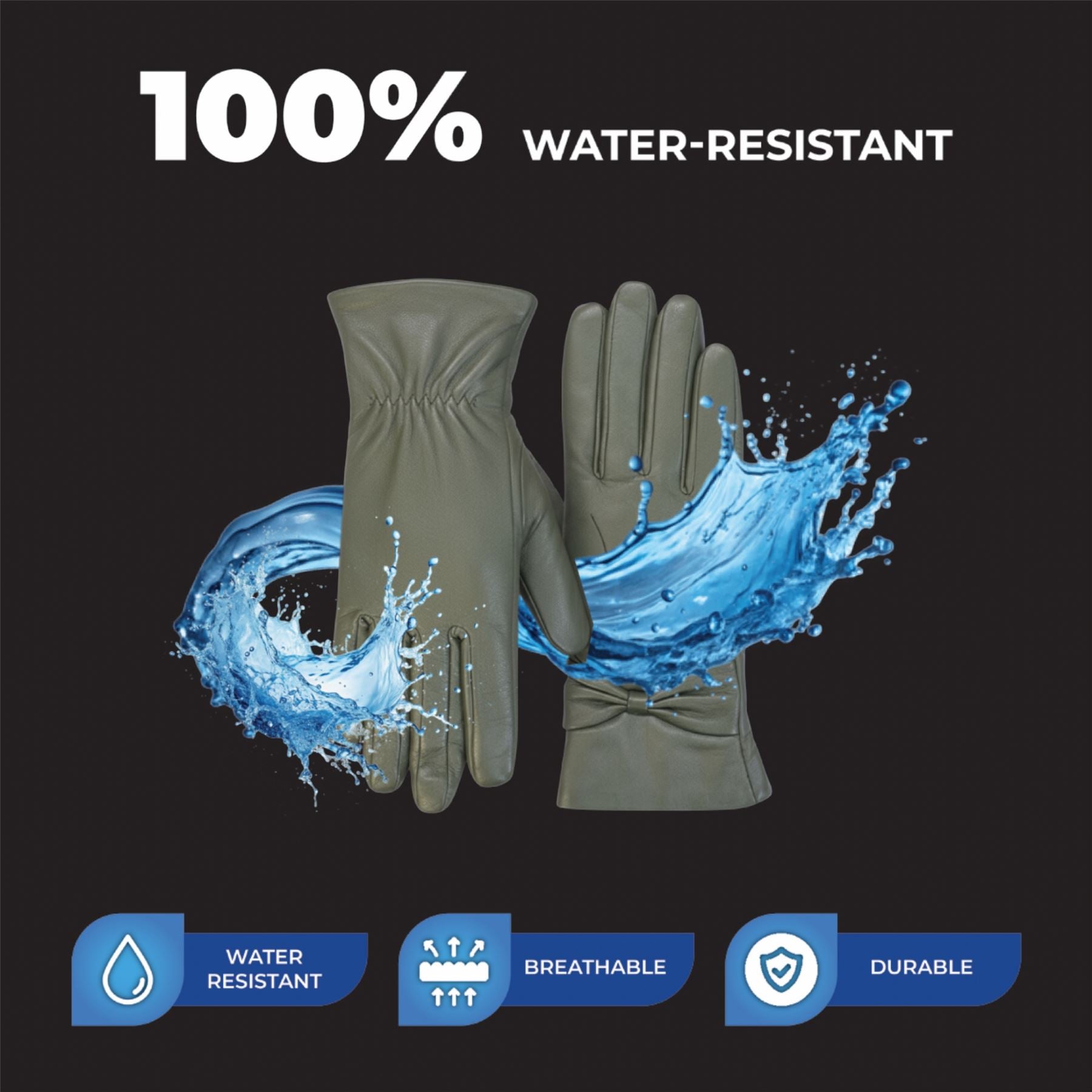 Womens Olive Green Italian Leather Winter Bow Design Soft Wool Lining Gloves - L-GLV-401