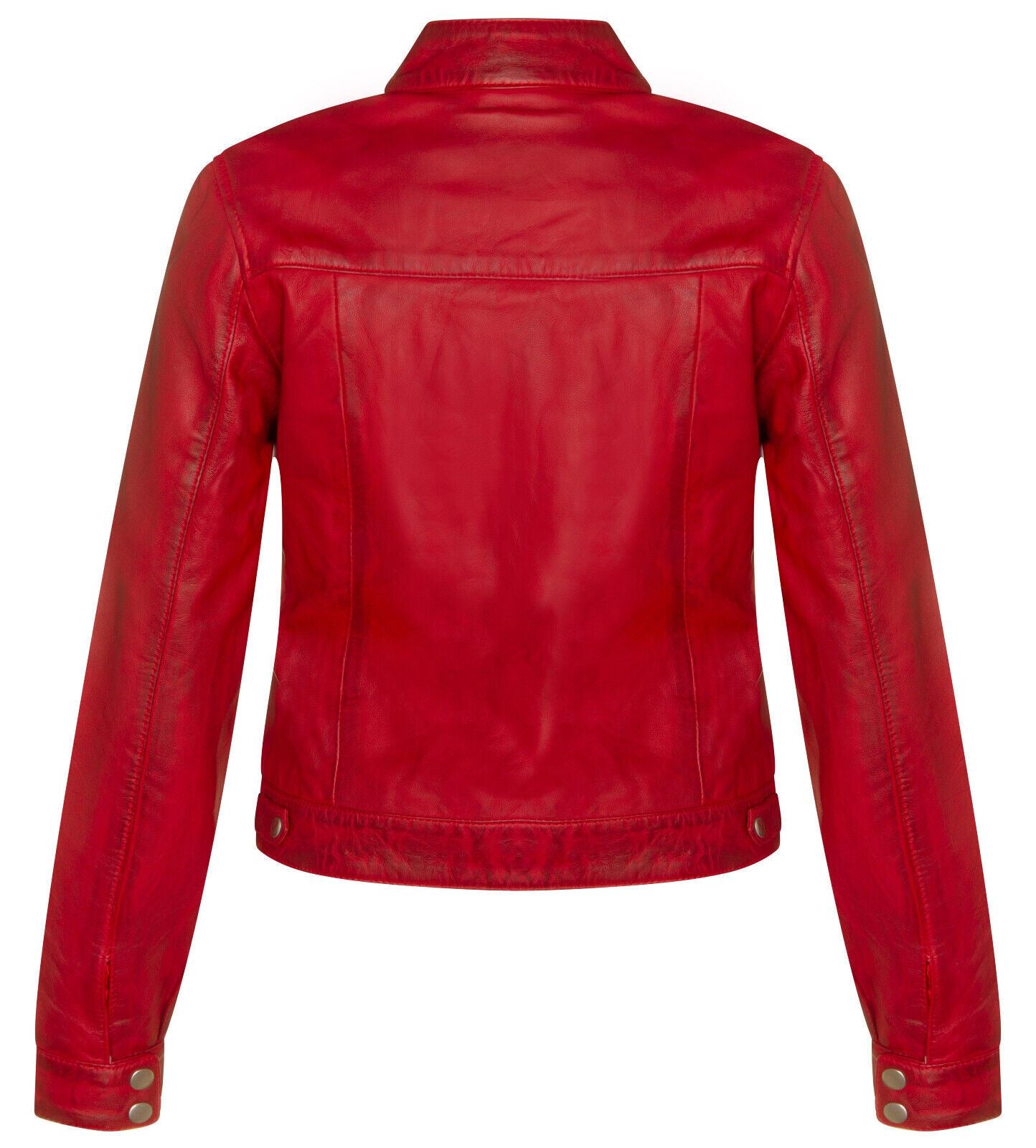 Womens Plain Leather Moto Biker Jacket-Braga