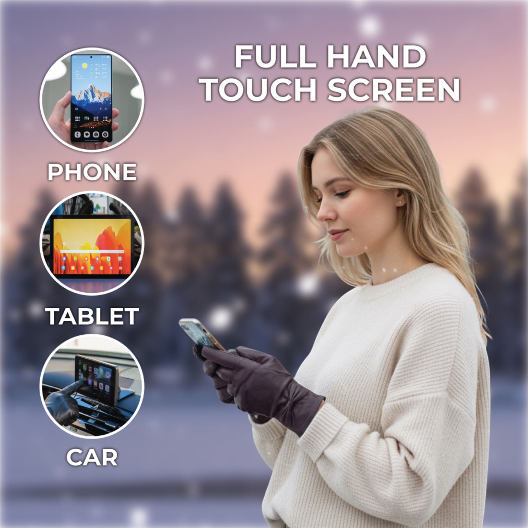 Womens Purple Italian Leather Winter Bow Design Soft Wool Lining Gloves - L-GLV-401
