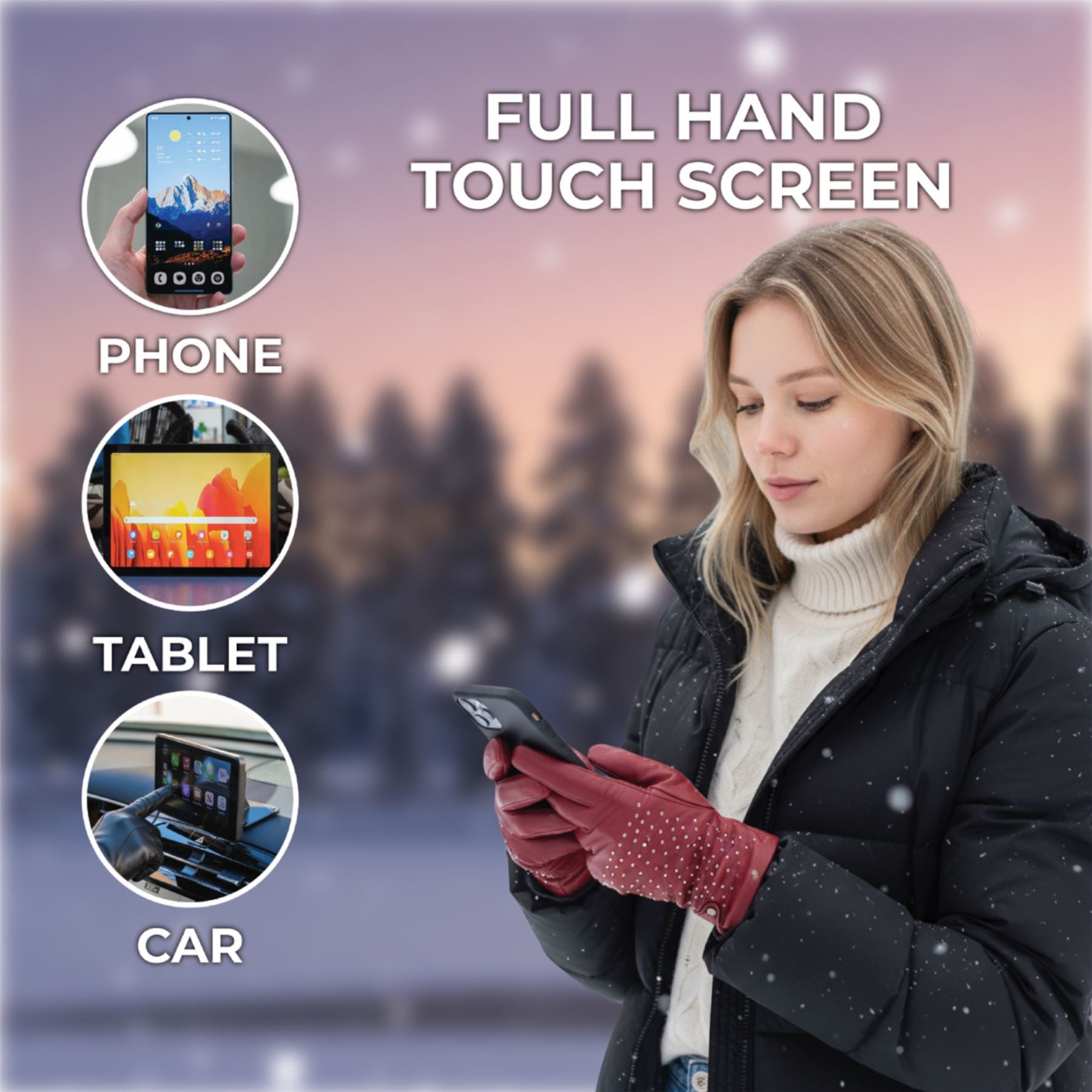 Womens Red Italian Leather Winter Studded Design Soft Wool Lining Gloves - L-GLV-601