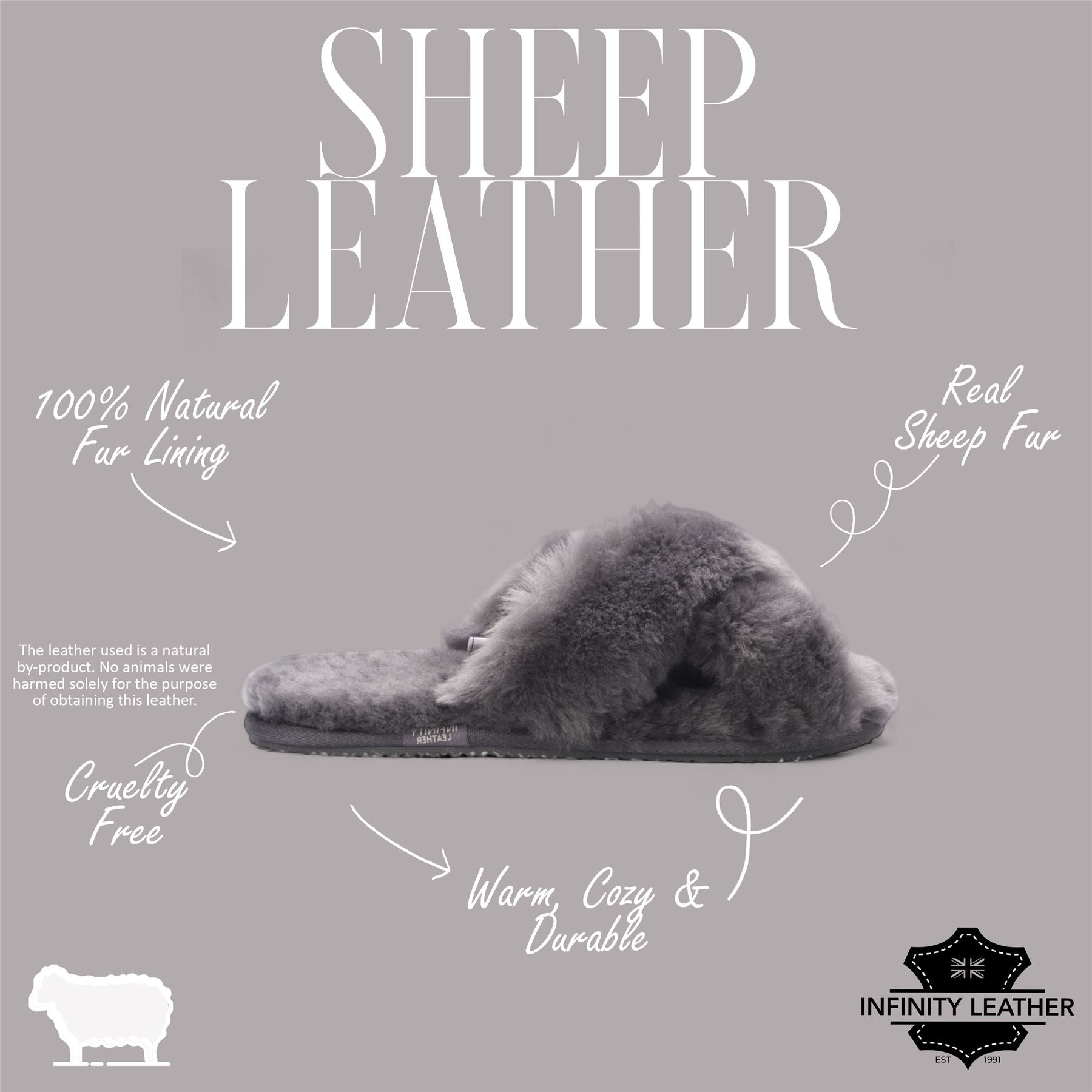 Women's Sheepskin Slippers Grey Warm Winter Fur Crossover - Snowbelle