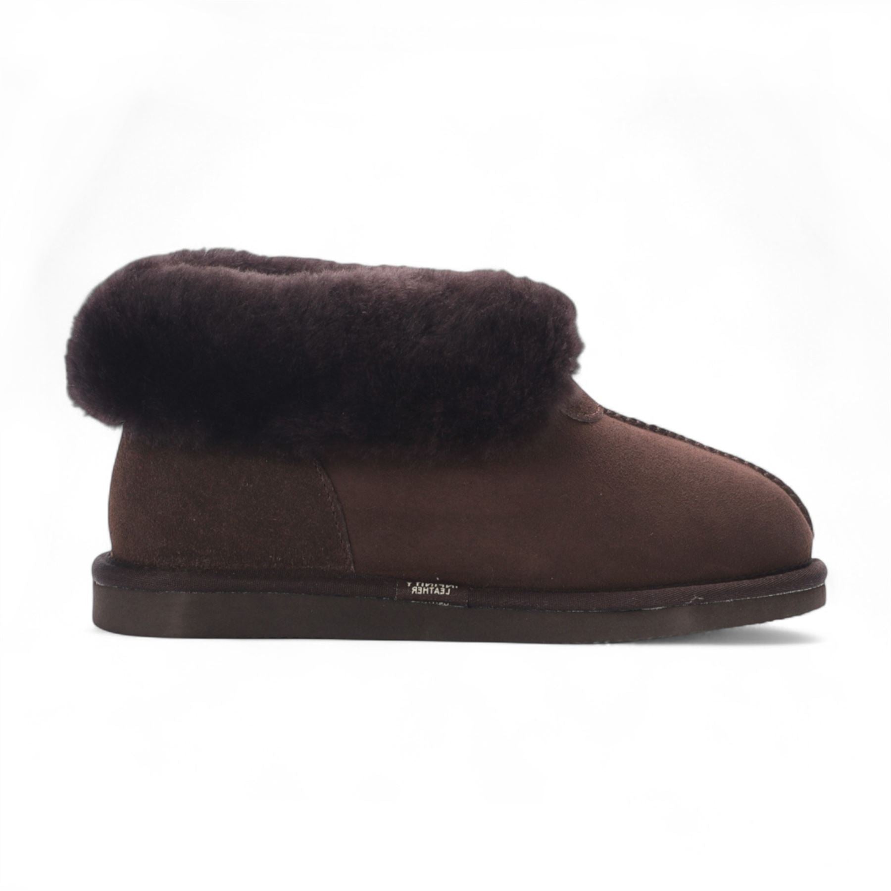 Women's Sheepskin Suede Ankle Brown Slip-On Bootie Winter - Glacier