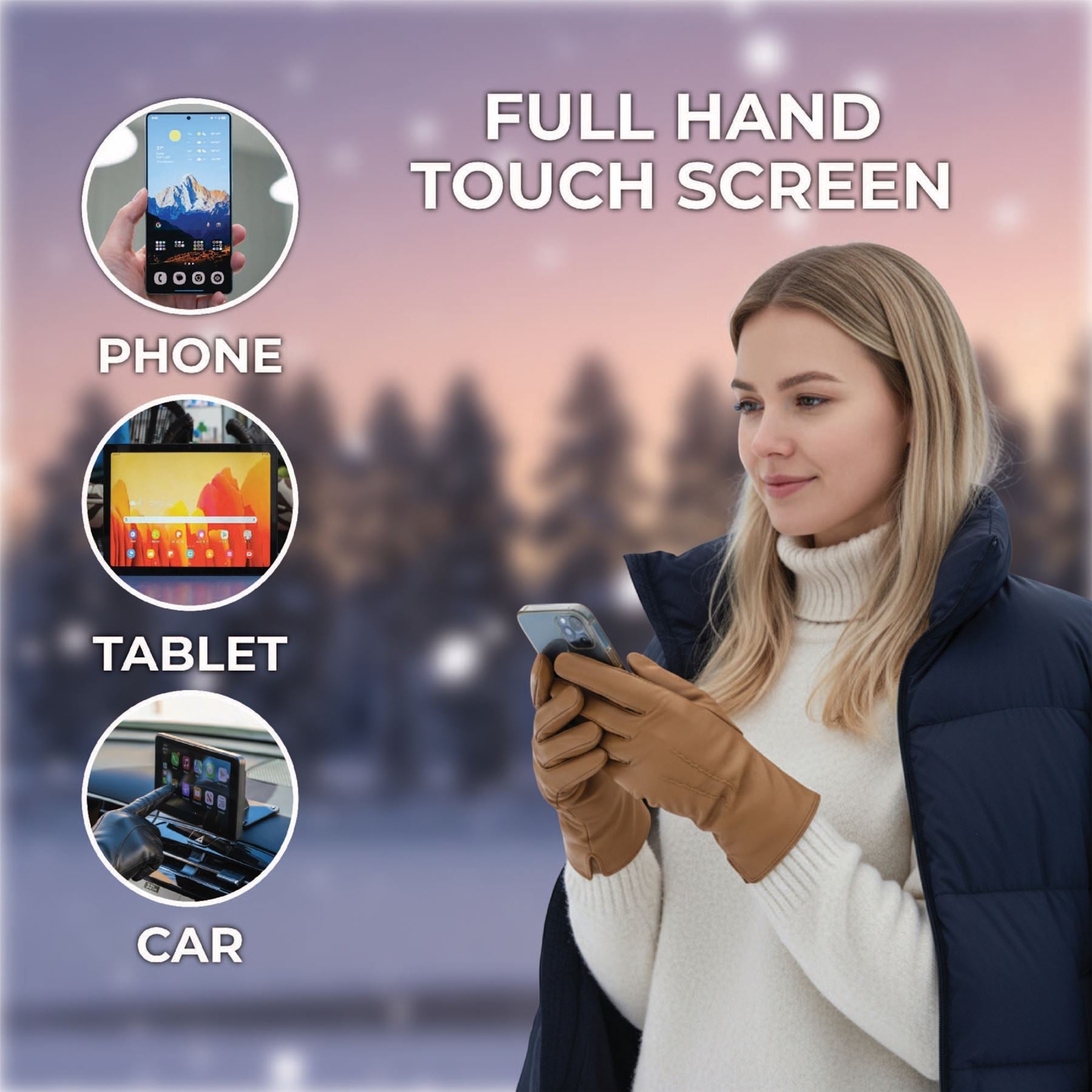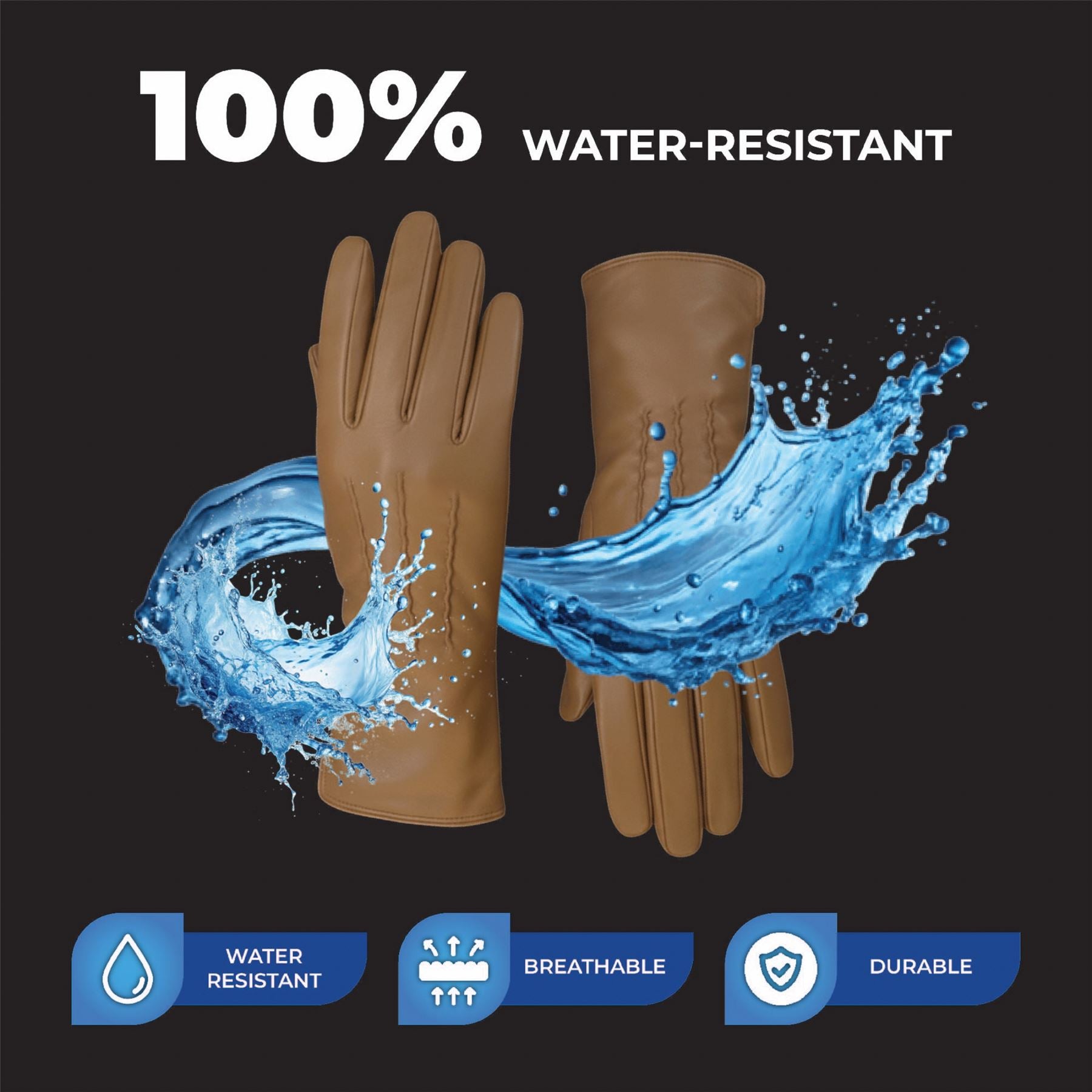 Womens Tan Brown Italian Leather Winter Stitch Line Design Soft Wool Lining Gloves - L-GLV-301