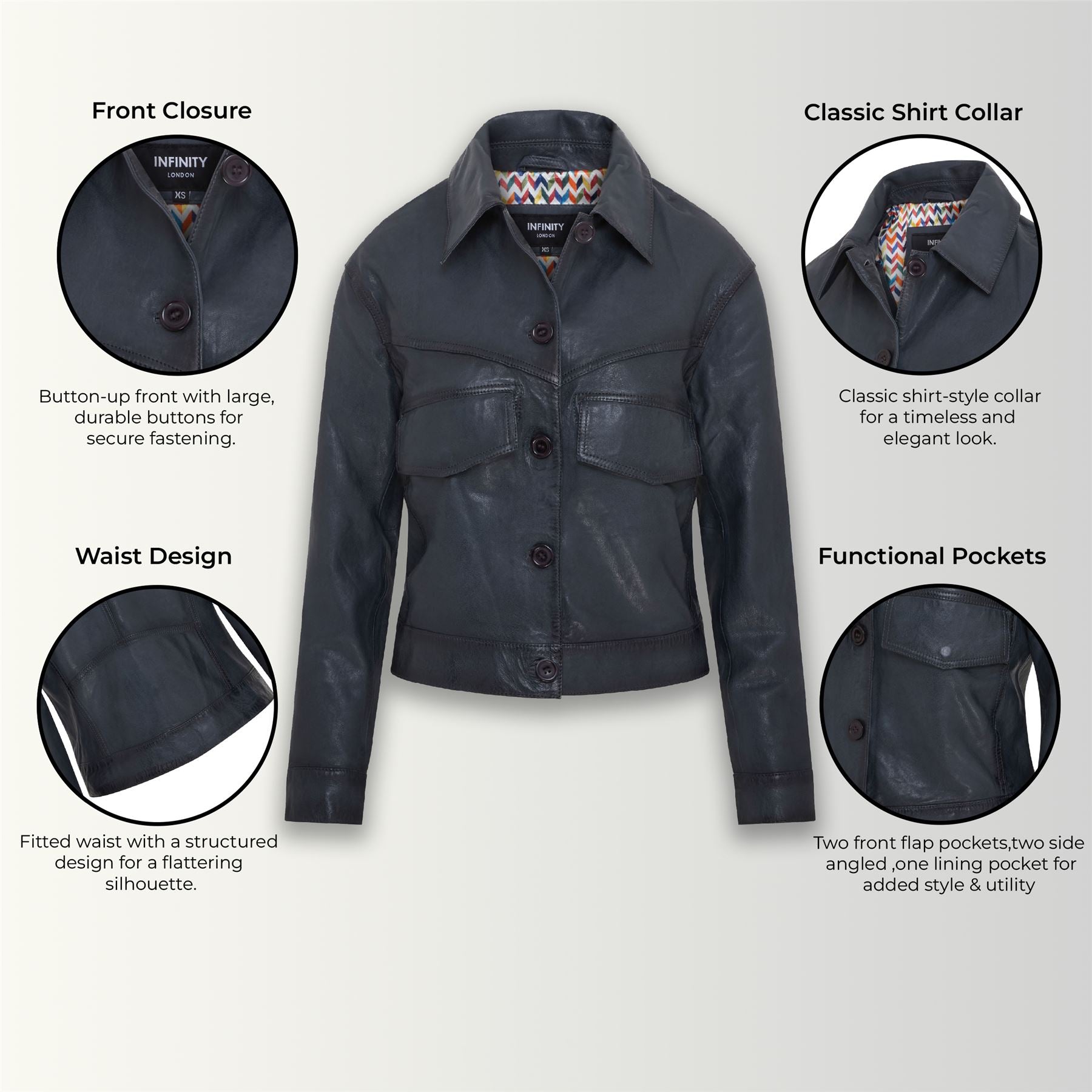 Womens Vintage Classic Lamb Leather Collared Biker Jacket